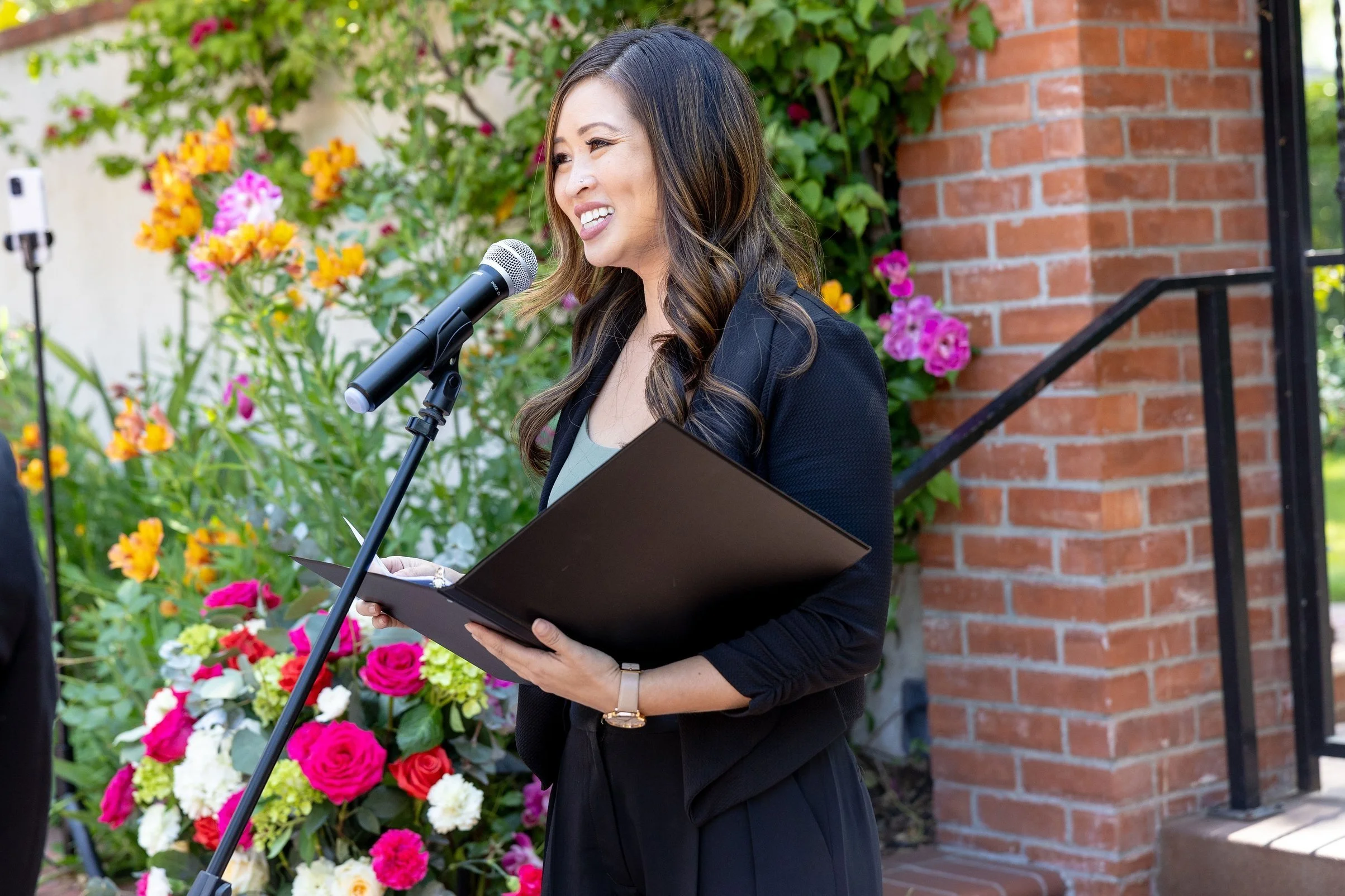 I use my interpersonal nature to get to know you as a couple, your love story, and your important must-haves—and my way with words to craft a heartfelt and memorable ceremony that uniquely captures and conveys your essence in front of all your nearest and dearest.